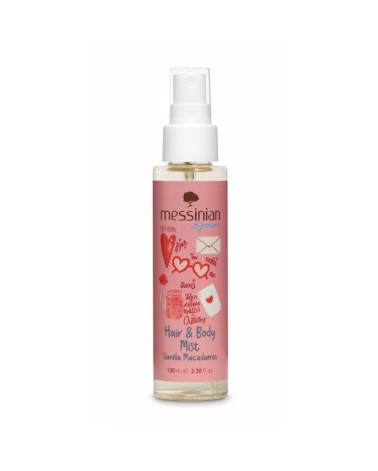 Το Vanilla Macadamia Hair & Body Mist είναι ένα γλυκό άρωμα που συνδυάζει νότες από καραμελωμένη βανίλια, καρπό macadamia, θαλασσινό αλάτι, λευκή σοκολάτα και άνθος καρύδας. Δημιουργήθηκε, για να προσφέρει φροντίδα και υπέροχο άρωμα, ενώ η ετικέτα του, εμπνευσμένη και σχεδιασμένη από τη Missy merida, αντανακλά την αγάπη και τη θετική της ενέργεια σε κάθε ψέκασμα! Διαθέτει μία ενυδατική σύνθεση με βιολογικό εκχύλισμα ελιάς και πανθενόλη (pro-B5), που περιποιείται την επιδερμίδα και τα μαλλιά σας.